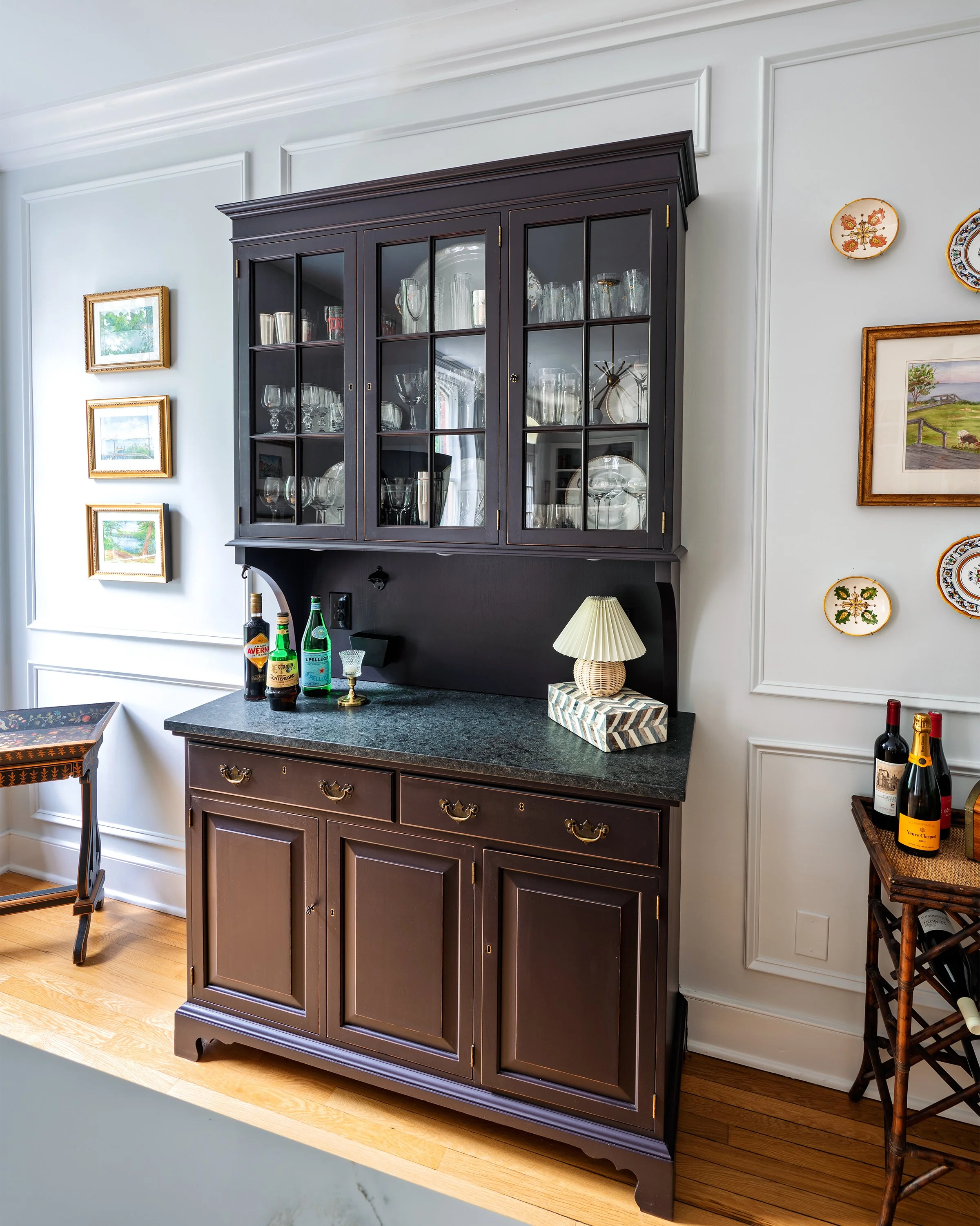 Believe it or not, this cabinet is the same featured in the before picture in the same spot. In the design phase, Kyle and one of the homeowners were planning for a bar cabinet similar in style to the existing cabinet. When her husband noticed this, he pointed out that the top piece of the hutch was separate and could be raised. Kyle then suggest brackets, a new counter top, and a fresh coat of paint. This meant a lot to the homeowners, as this furniture piece is actually a family heirloom from the 1800’s. It’s been given a new lease on life!